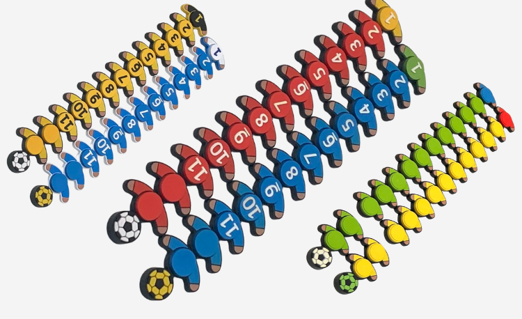 These magnets are really smart – they even show body shape, so coaches can properly demonstrate positioning on their tactics board. Makes explaining things so much easier.