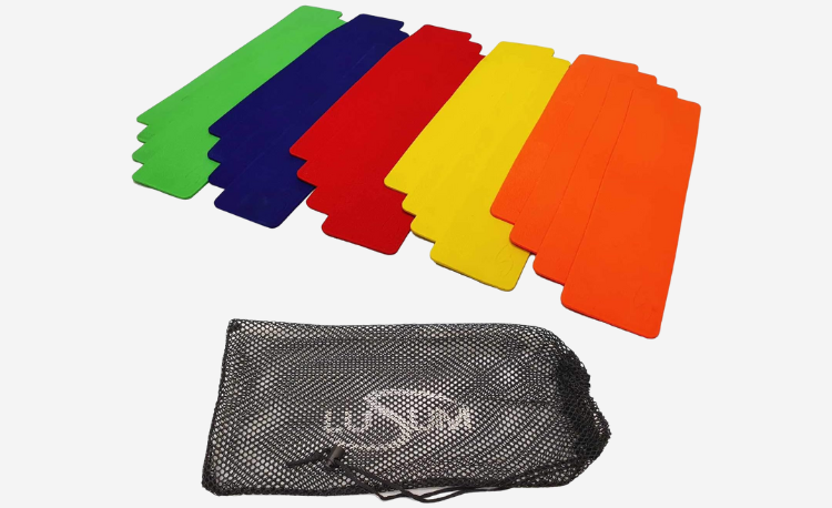 Cones and flat markers might look similar, but they’re not the same thing! Flat markers are brilliant for setting out areas and helping with positioning. Handy bit of kit that’s always worth having a few of. These rectangular ones are great and very useful for marking out the pitch.