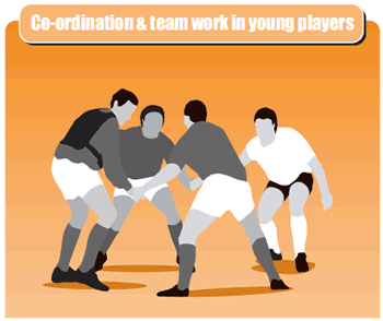 Apart from warming up, young players learn a great deal about co-ordination. The players in the huddle have to use their skills to keep the lone tagger at bay. They actually have to think quickly to gain the upper hand. Meanwhile, the lone tagger is on the prowl, trying to catch the bibbed player.