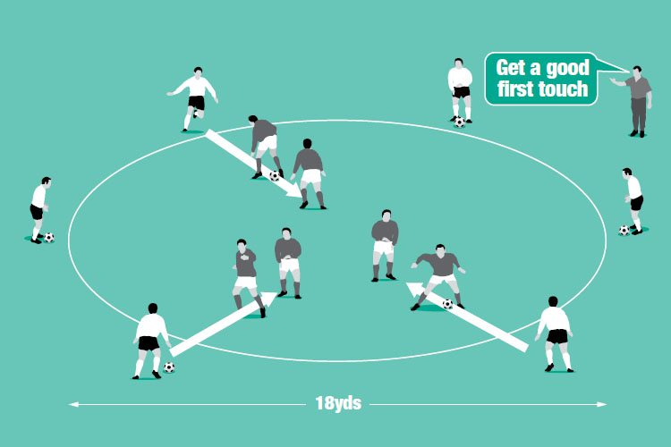 A good first touch to control the ball, which is followed by an accurate pass and then moving to be available for another pass is a good habit to have. Instil this in your players with this session.