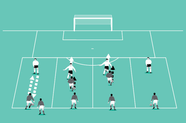 This simple drill will enable your players to practise the skills required to outwit an attacker who’s dribbling straight at them.